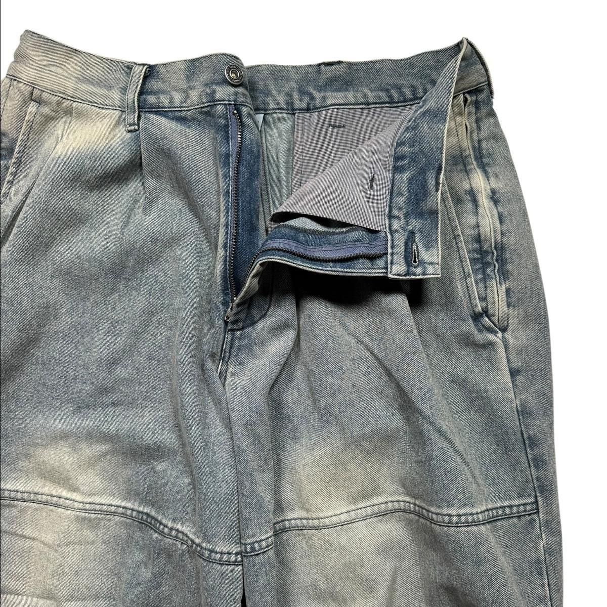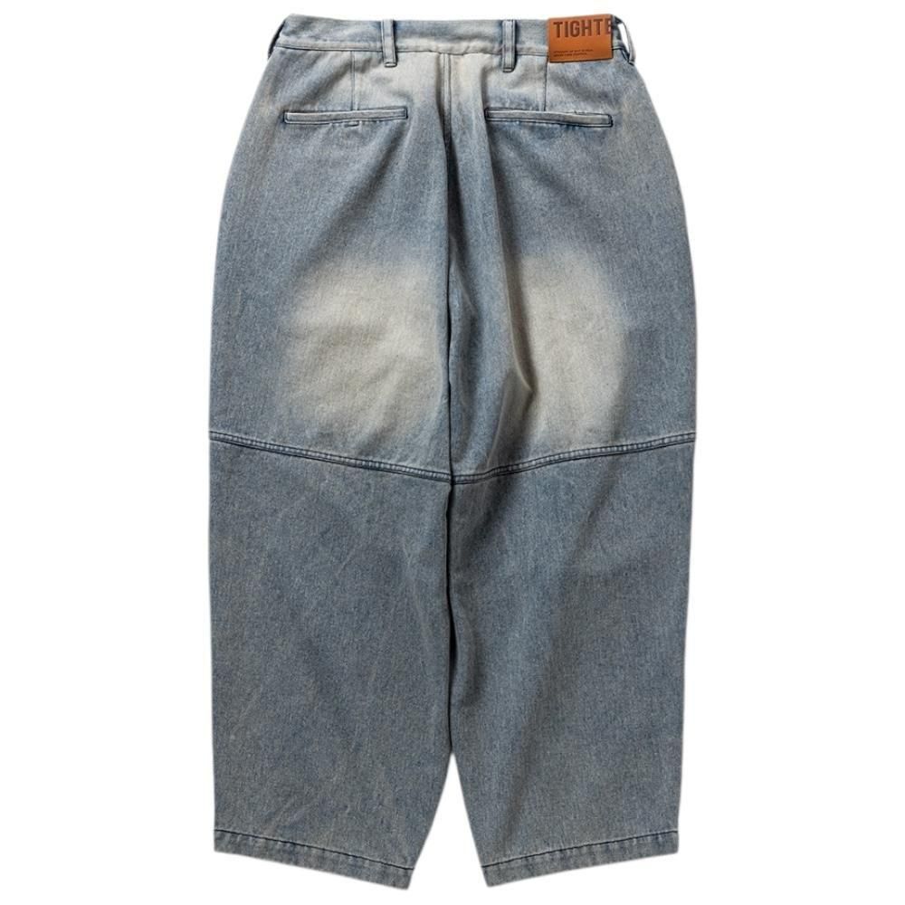 定番のバルーンパンツに切り替えを施したデニムパンツ。