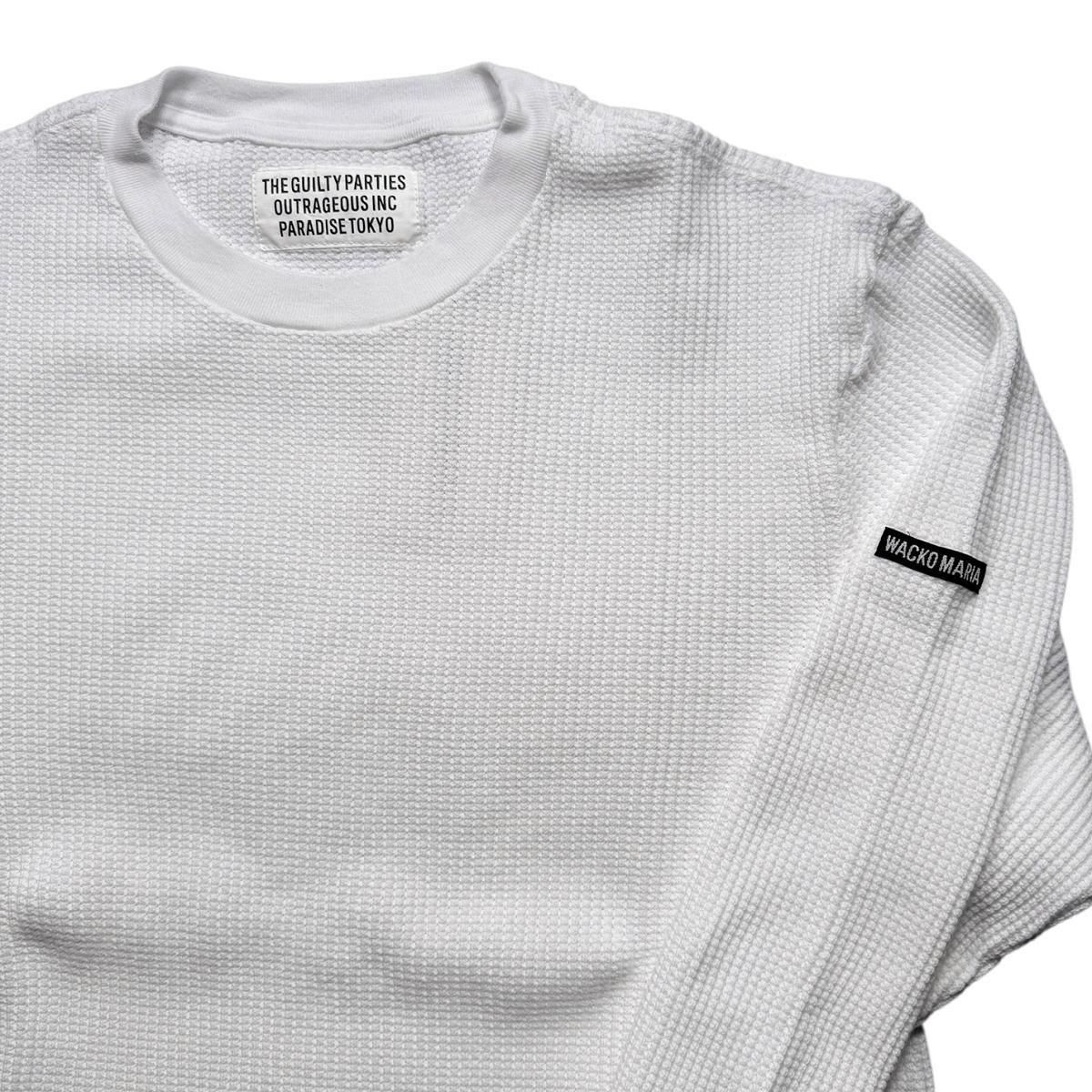 フロント左裾、左袖にタグを配置した肉厚なサーマルロングスリーブT。