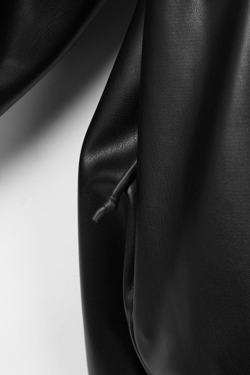 ストレッチ性の少ないリアルレザーのような風合いと、