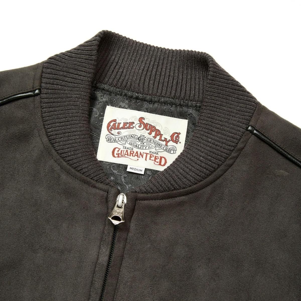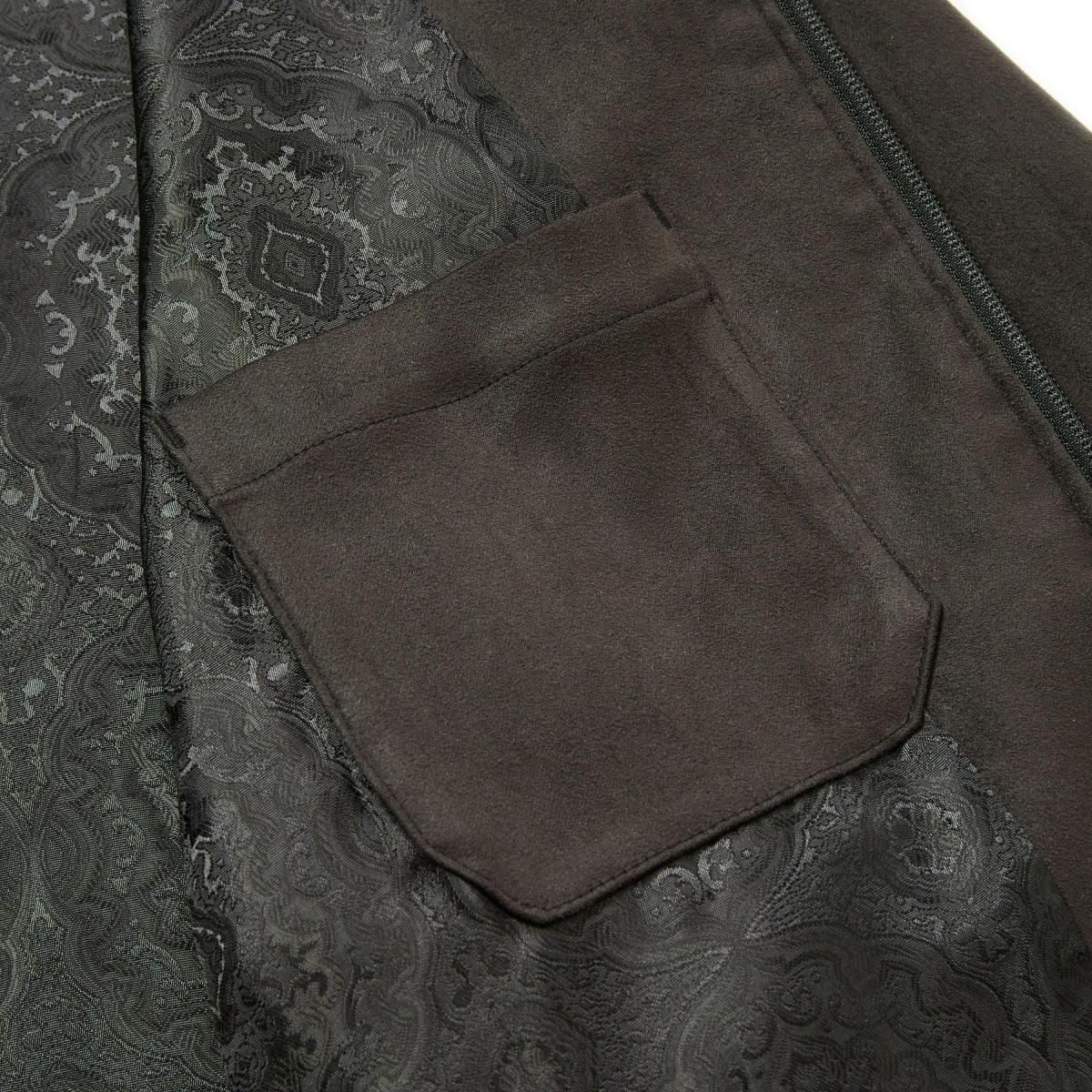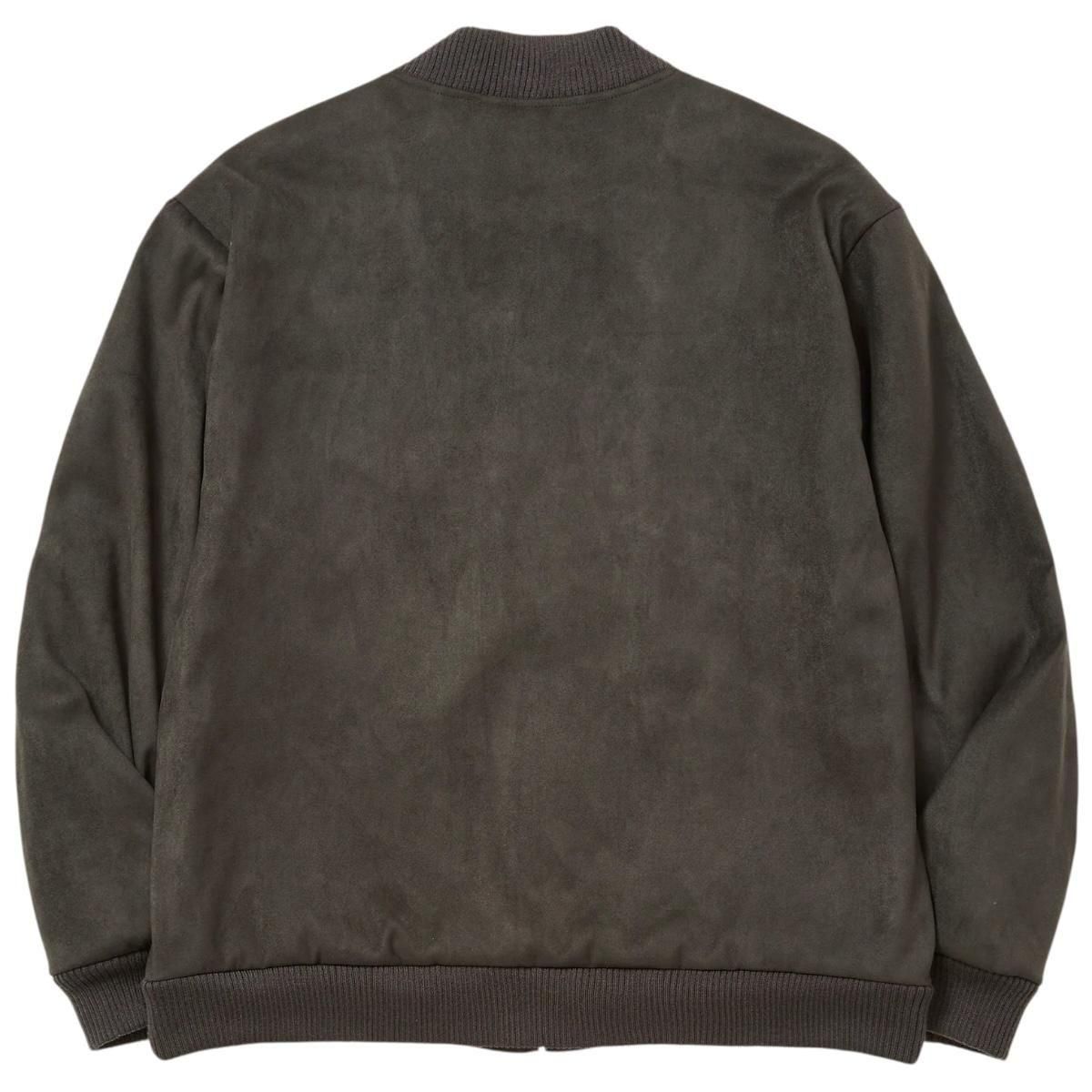 フェイクスエードリブジャケット。経糸にマイクロファイバーuts、緯糸にT400を使用したフェイクスエード生地を採用。高収縮糸を組み合わせ二重構造にすることで、強度と柔らかさを兼ね備えているのが特徴。身幅にゆとりを持たせたシルエット。ショルダー部分にフェイクレザーパイピングを施し、裏地はオリジナルペイズリー柄、左胸に刺繍が入る。