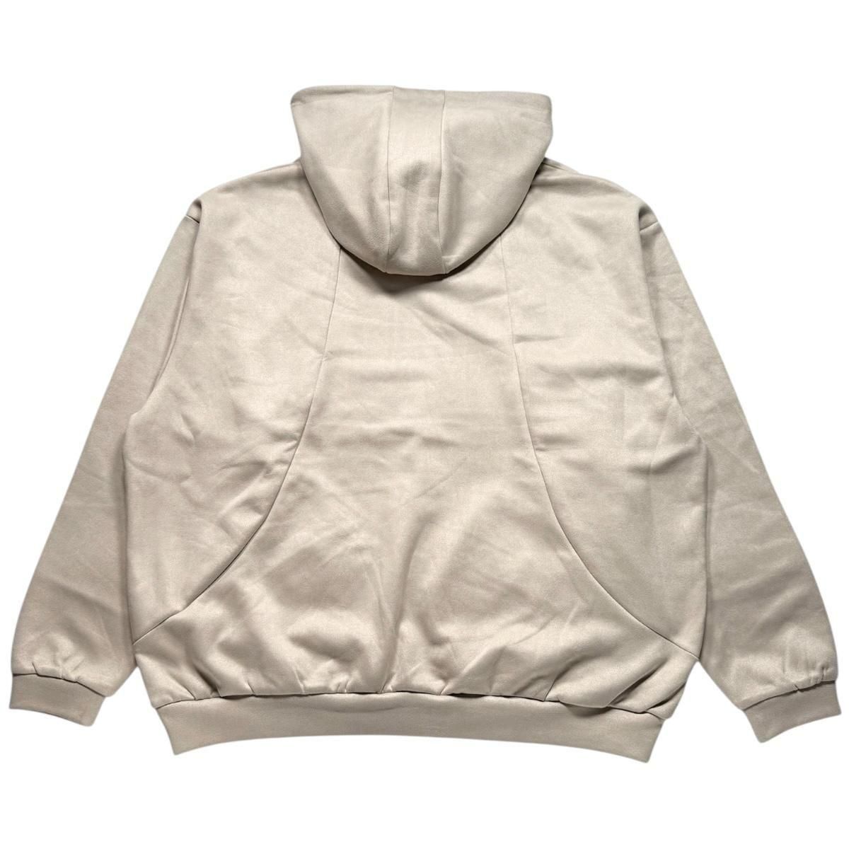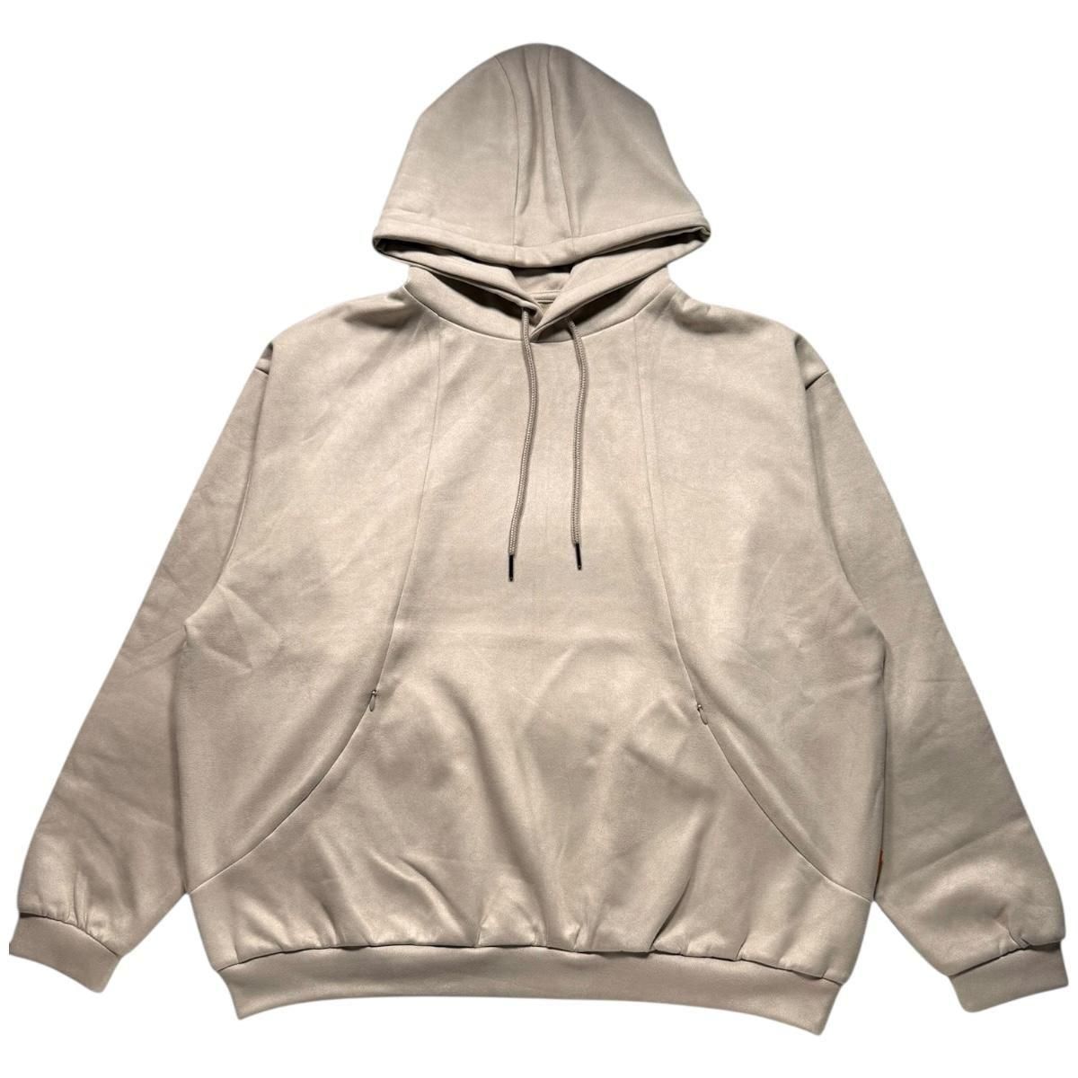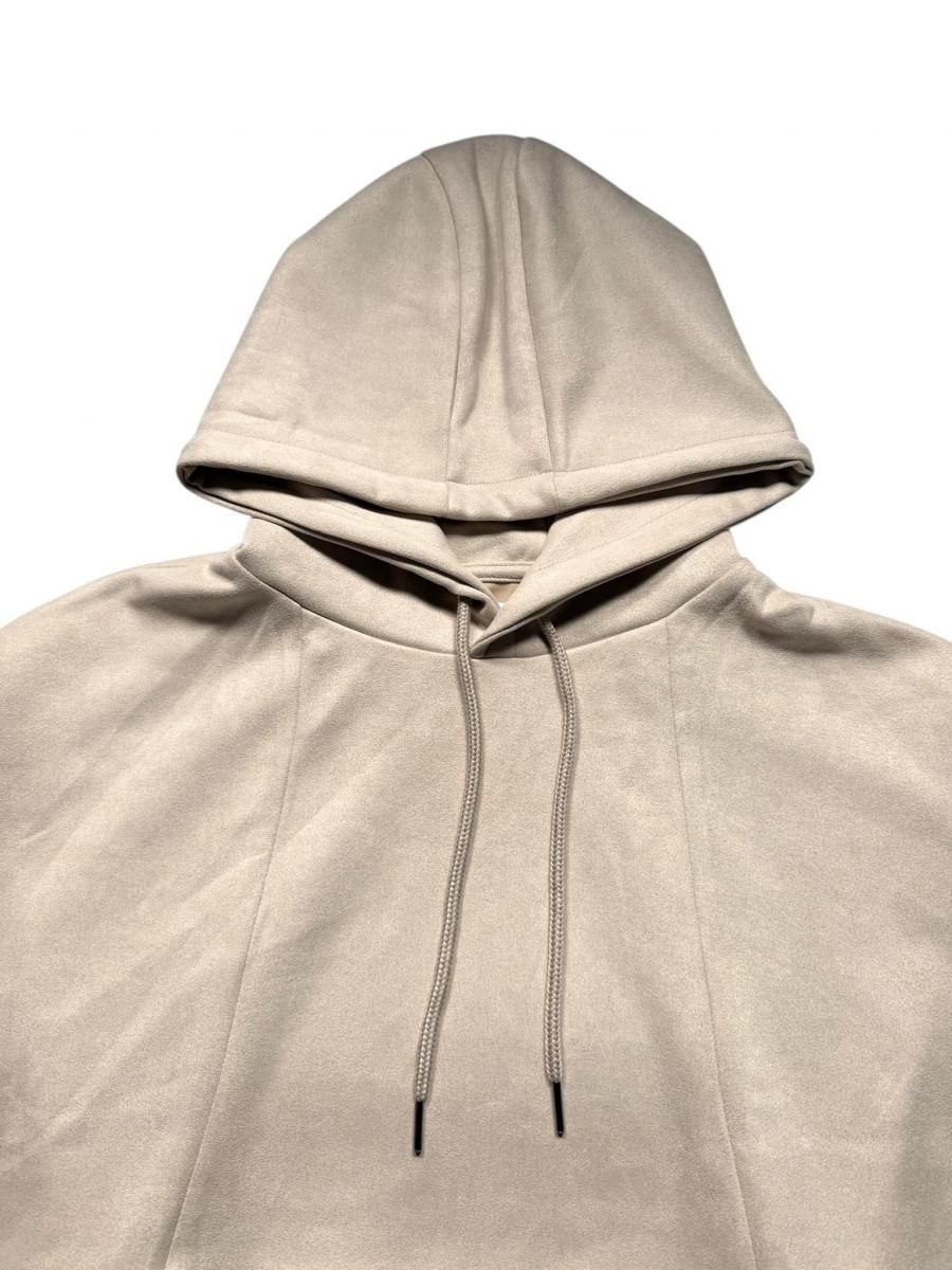 スエード調の質感が特徴的な生地を使用したプルオーバーフーディ。