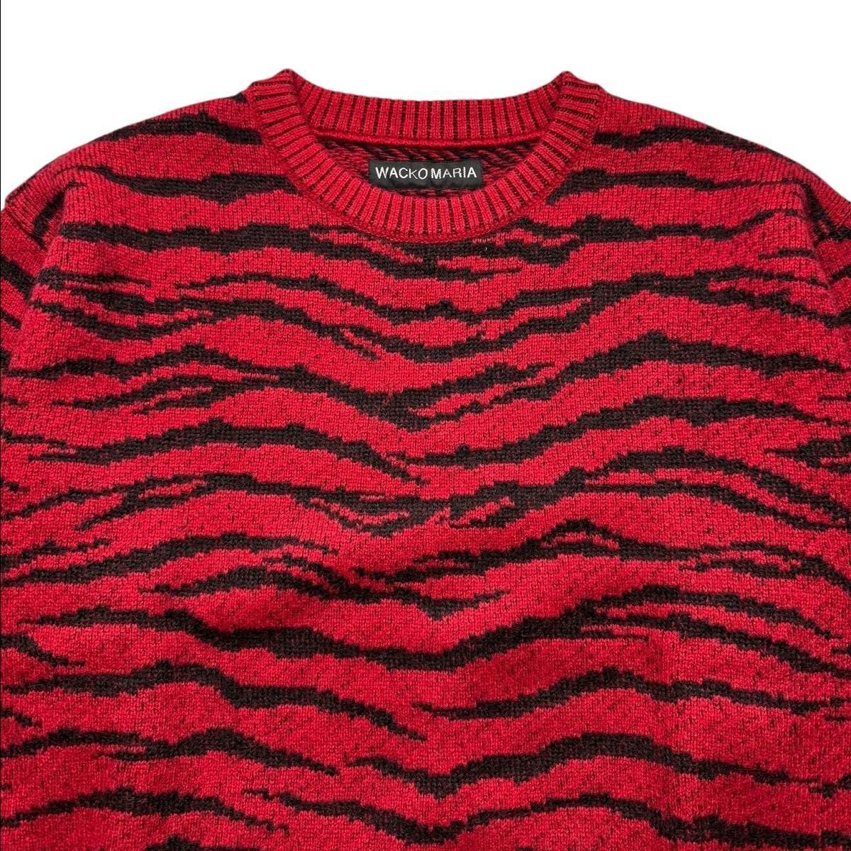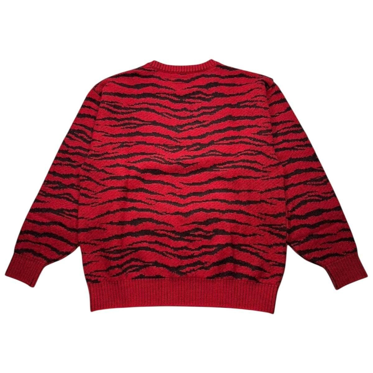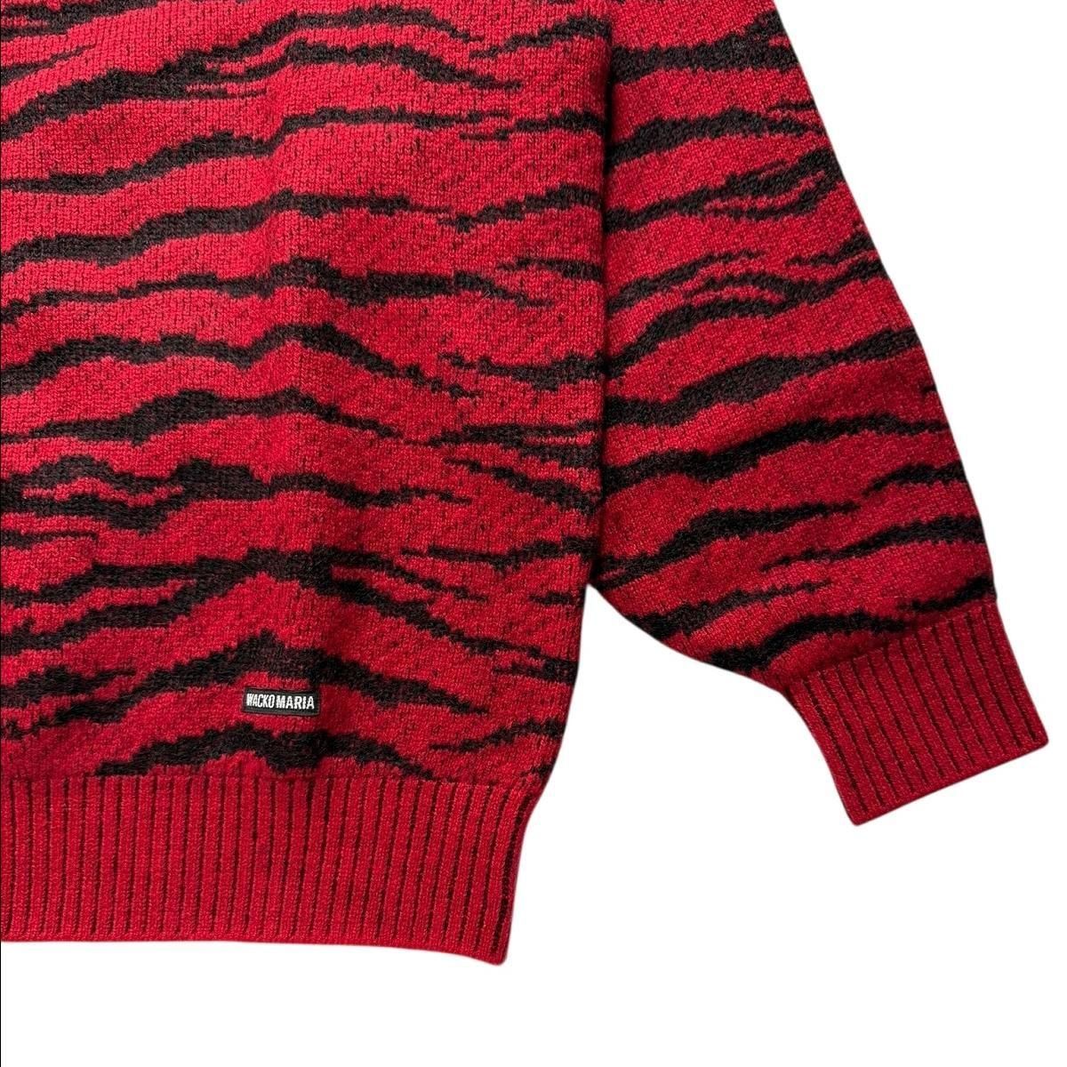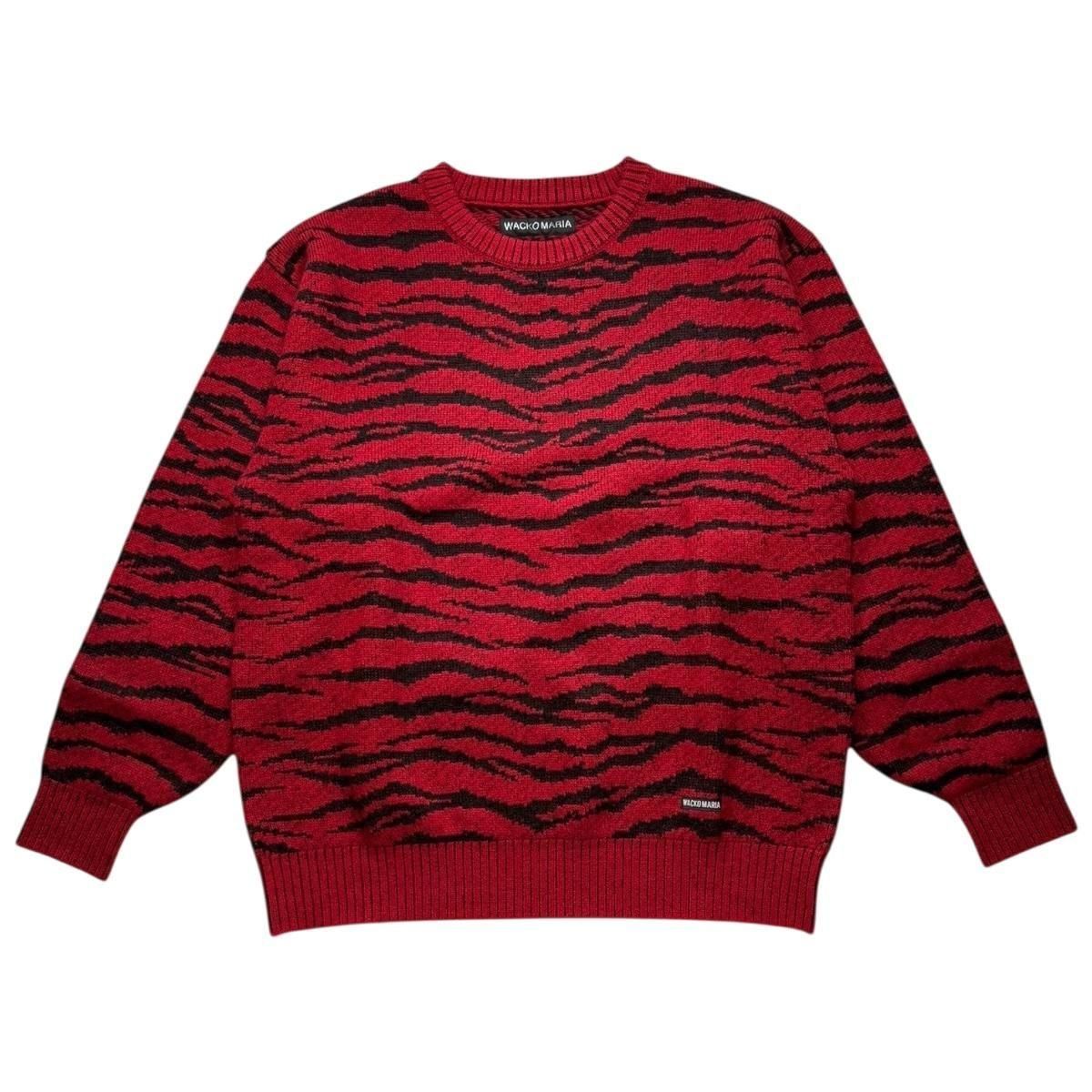 全面に配された虎柄を粗めな編みで落とし込んだデザインワークに仕上がっております。