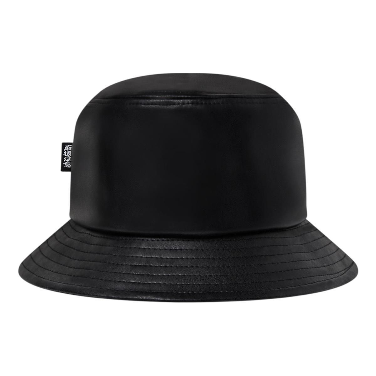 PU素材を使用した定番のワッペンを施したバケットハット。