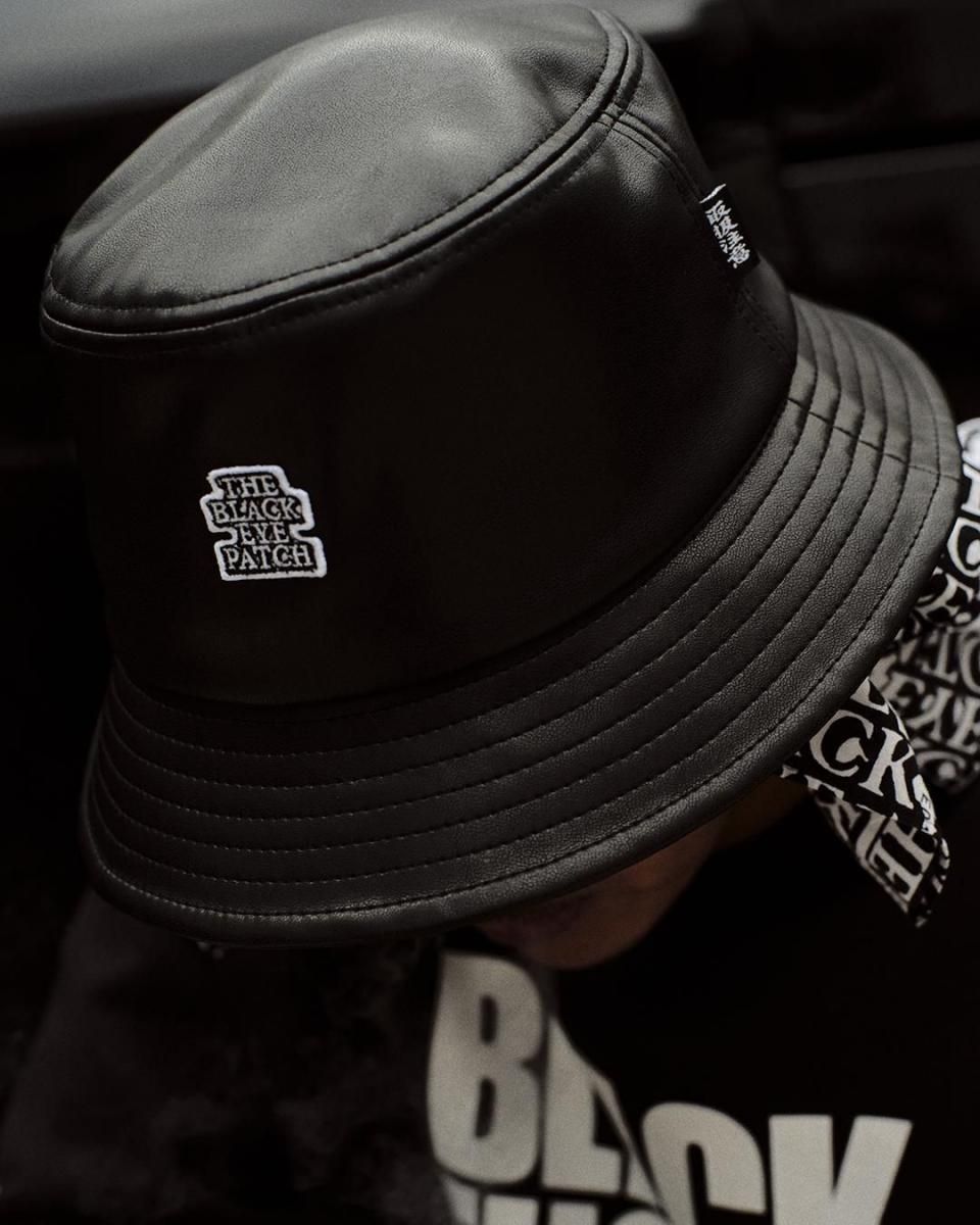 PU素材を使用した定番のワッペンを施したバケットハット。