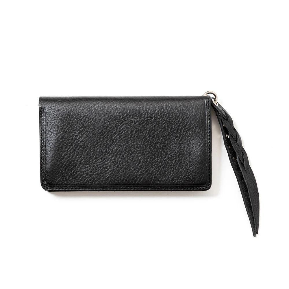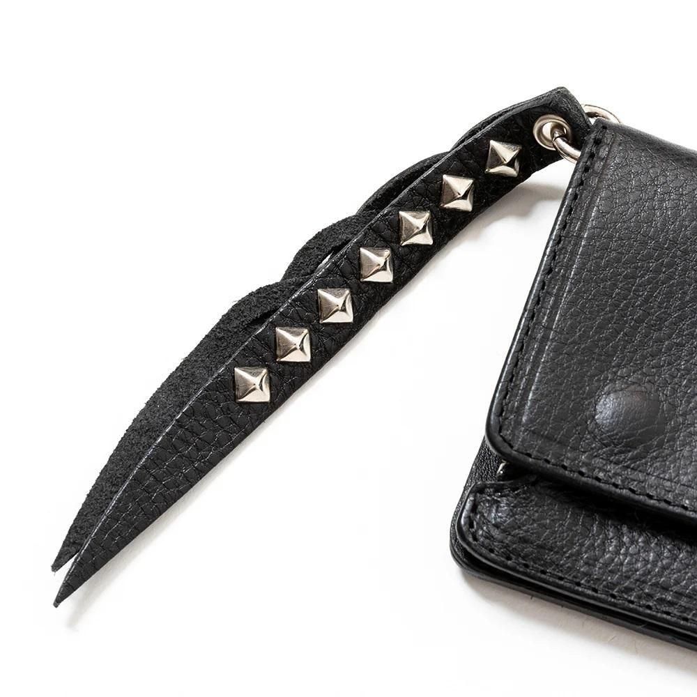 シボ感あるプレーンレザーにスタッズチャームを施して作製されたロングウォレット。レザーは使い込む程にシボが消え、艶感ある経年変化を楽しむ事が出来る。また、収納もしっかりと確保し、使い勝手の良いウォレットに仕上がっている。