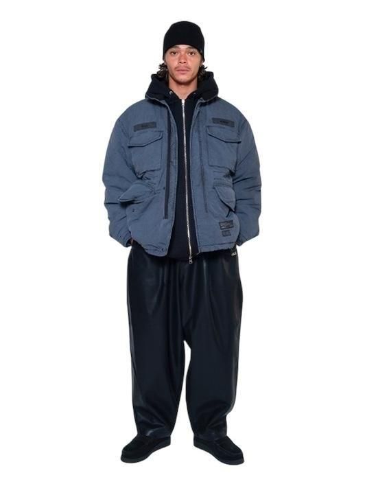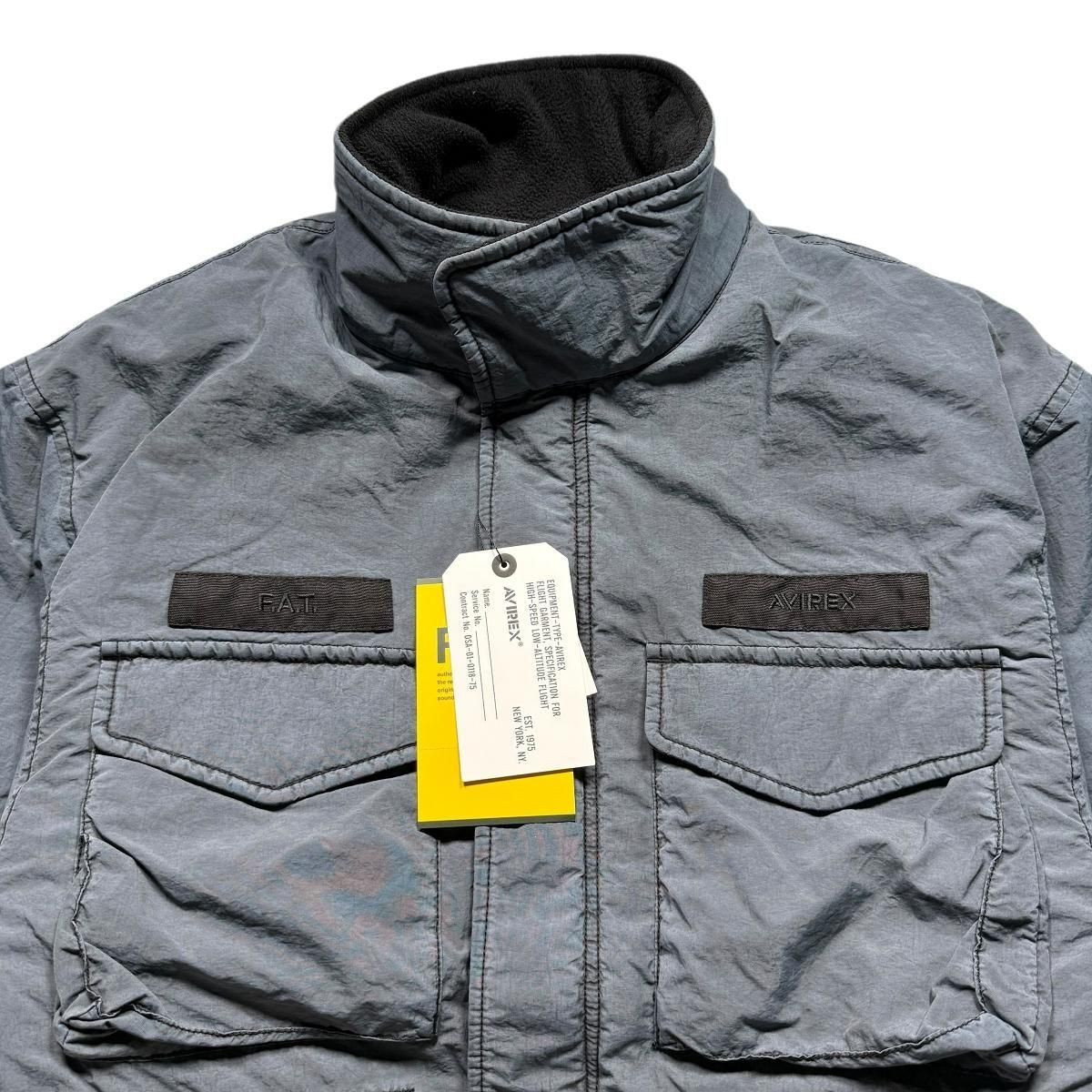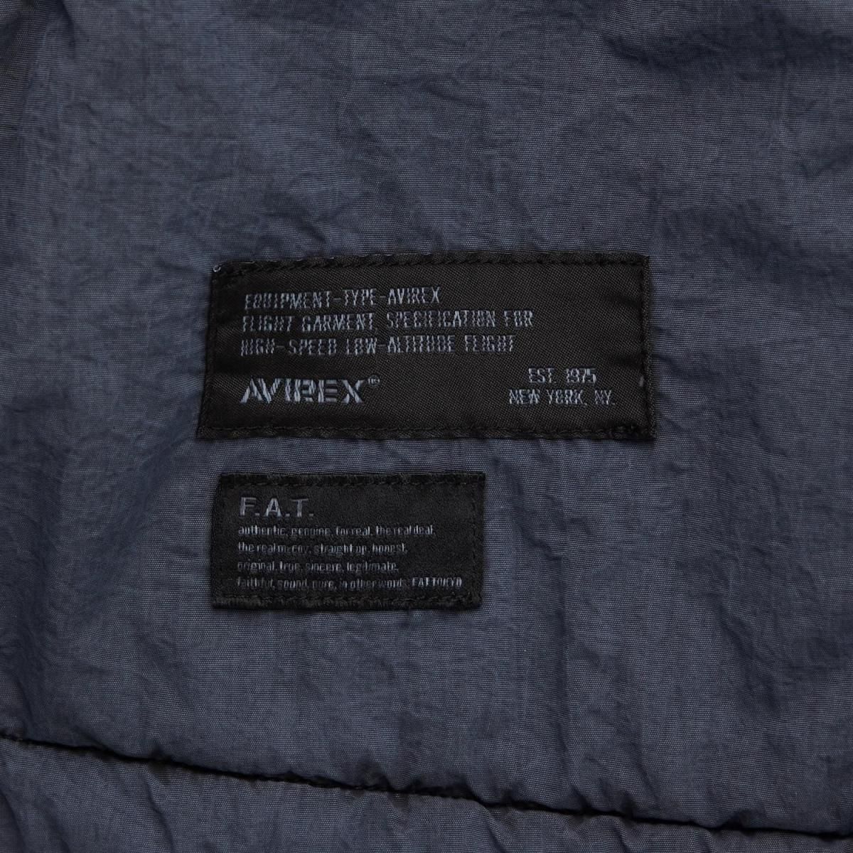 AVIREX×F.A.T.のコラボレーションによるミリタリーブルゾン。M-65フィールドジャケットをベースに、ゆったりとしたシルエットやボリュームのある中綿仕様など、F.A.T.らしいディテールアレンジが魅力。キメ細かいワッシャーナイロンに独自のピグメント加工を施すことで、絶妙な色合いとアタリ感が雰囲気ある着こなしを演出してくれる。インナーにパーカーなどを合わせてラフなコーディネートで楽しみたい。両胸のAVIREX/F.A.T.刺繍パッチやポケットのブランドネームがさり気なく主張してくれる。