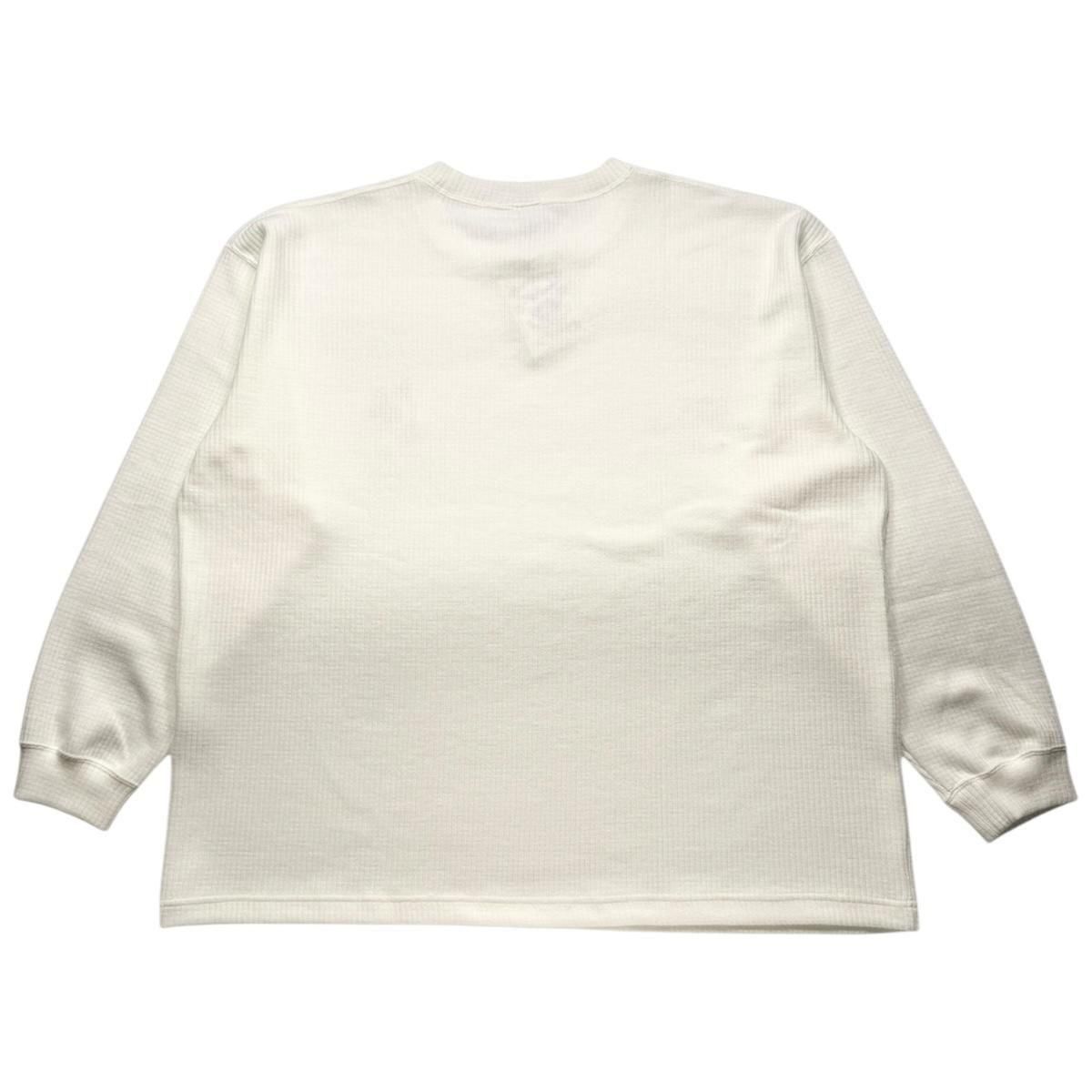 ワッフルL/Sカットソー。吸湿発熱性、保温性があり、湿気もコントロールし、蒸れにくい機能素材を採用。起毛加工により肌触りも良いのが特徴。ドロップショルダーワイドシルエット。フロント左胸に刺繍が入る。