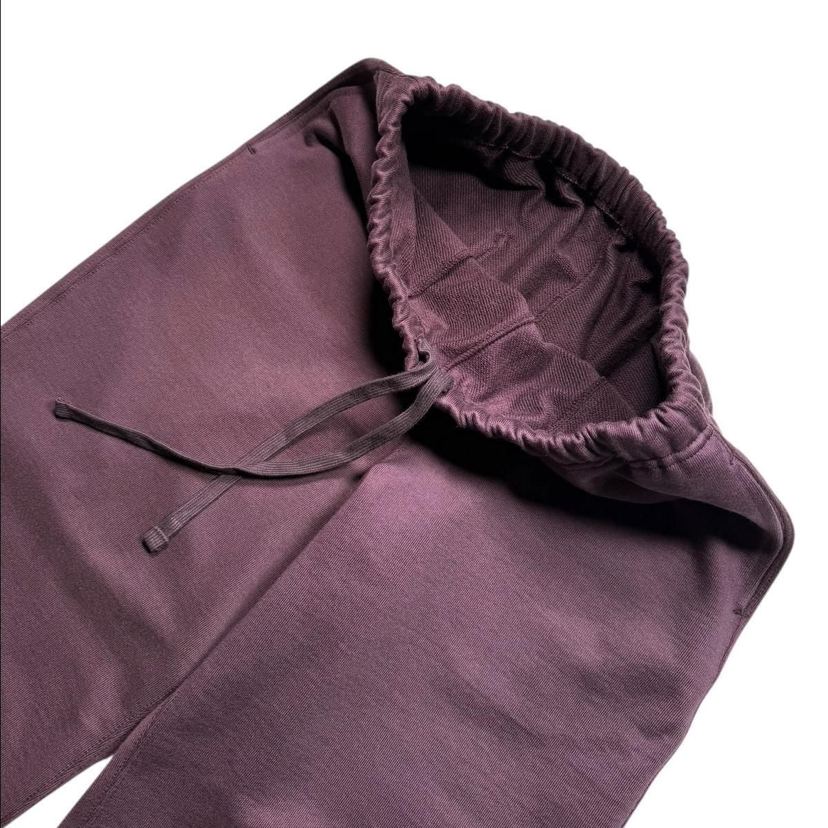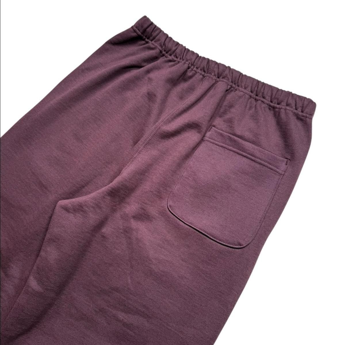 光沢と落ち感が際立つ、ワイドストレートシルエットのスウェットパンツ。