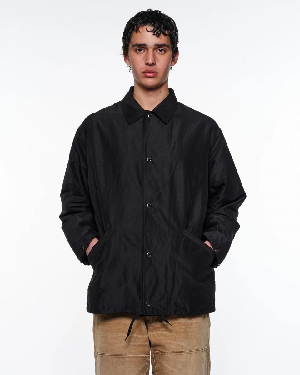 極めてシンプルなデザインで仕立てたコーチジャケット。程よいゆとりのあるシルエットで、性別や体型を問わず取り入れやすいシルエットです。