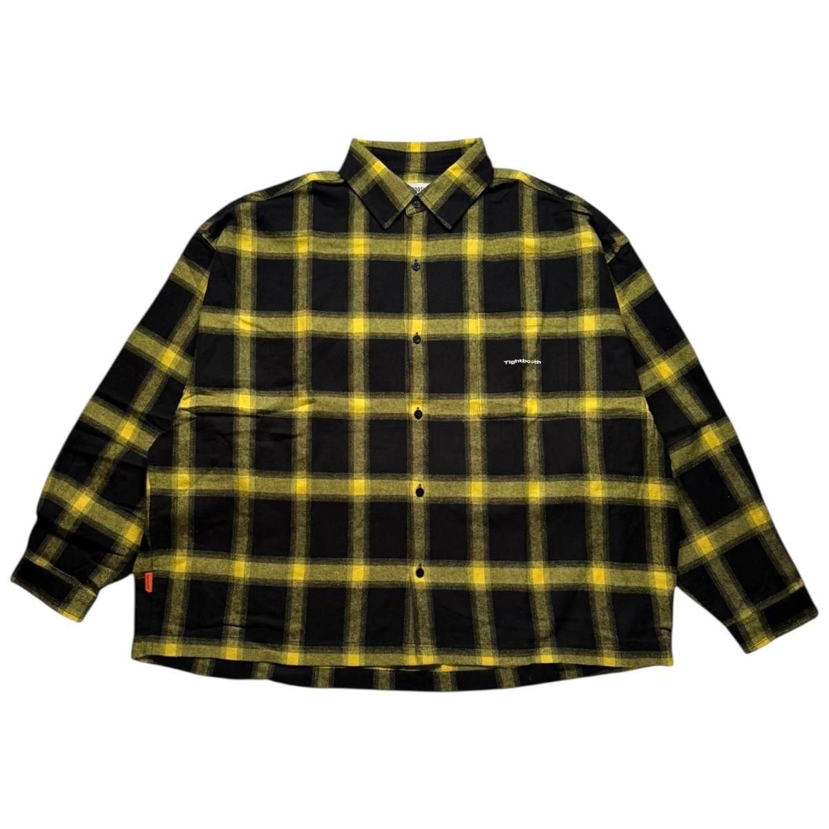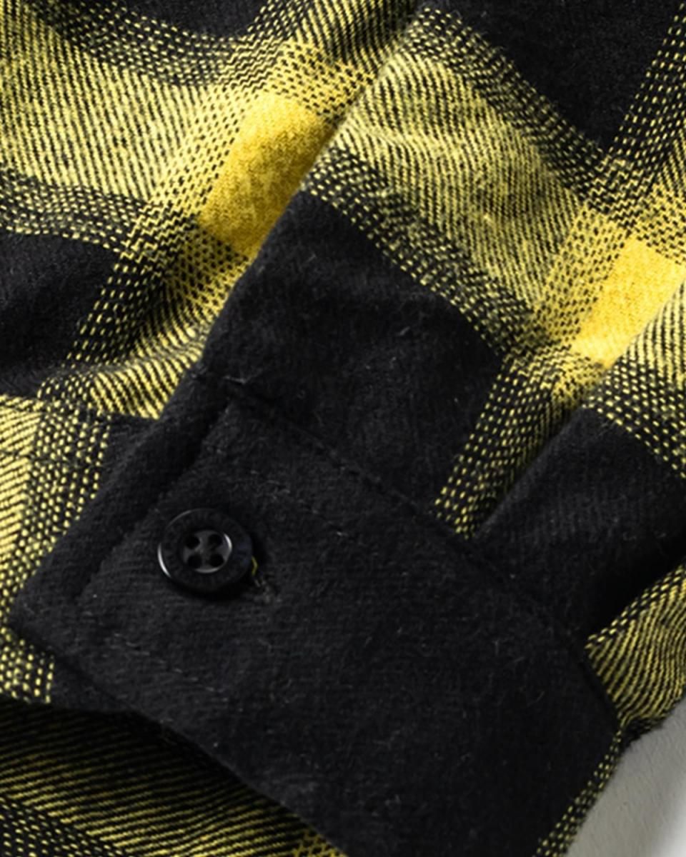 微起毛のチェック生地を使用した長袖ボタンアップシャツ。