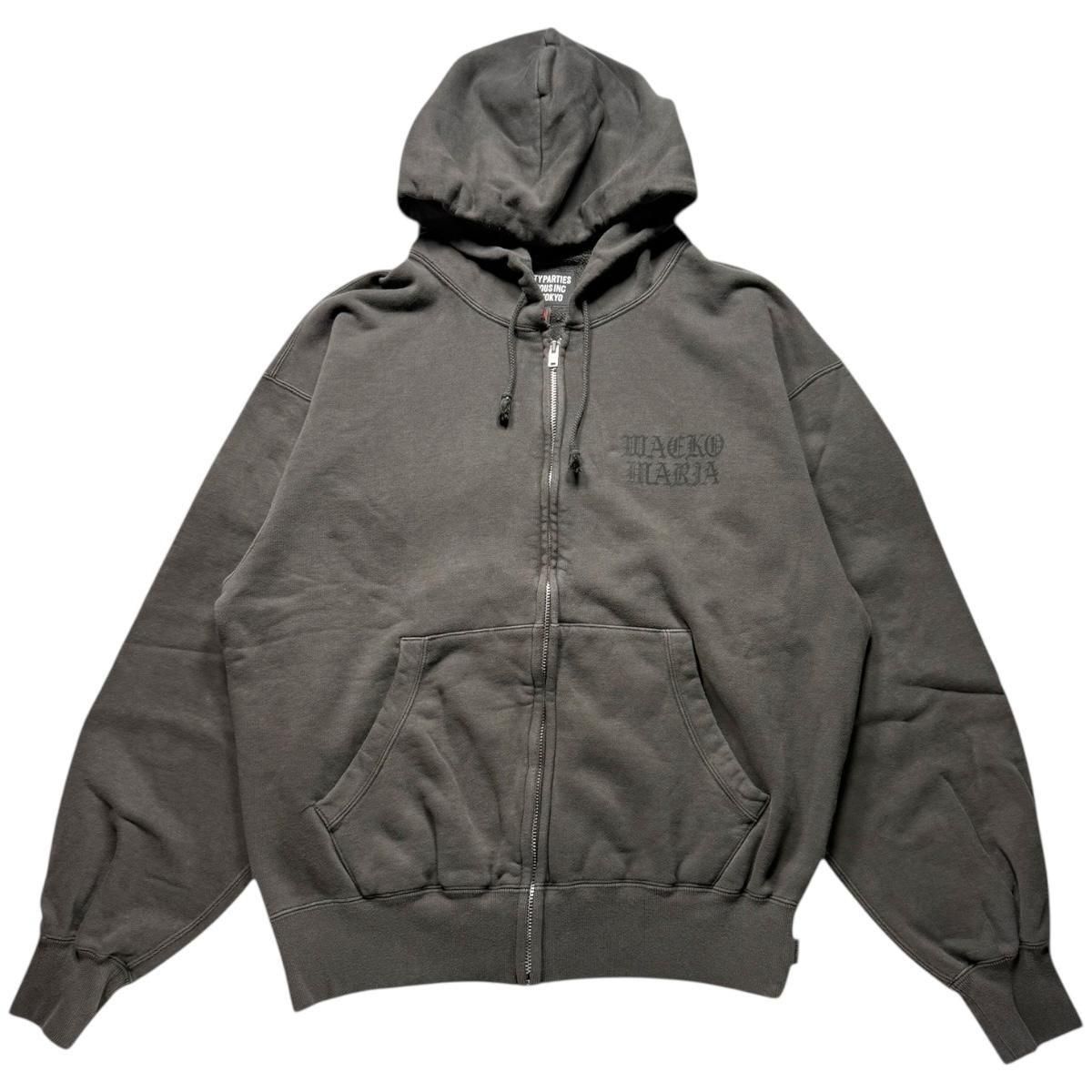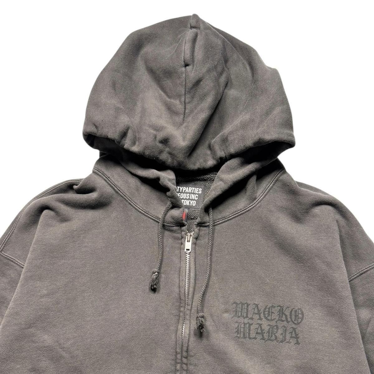 DEATH RAW RECORDS / WASHED MIDDLE WEIGHT FULL ZIP HOODED SWEAT SHIRT(GRAY)