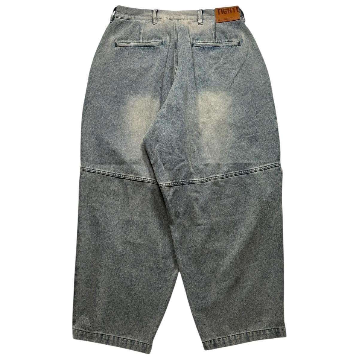 定番のバルーンパンツに切り替えを施したデニムパンツ。