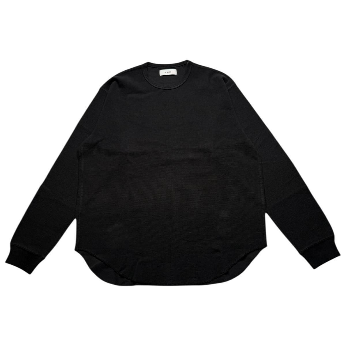 CREW NECK L/S TEE - ORGANIC COTTON HEMP MESH KNIT -(BLACK)