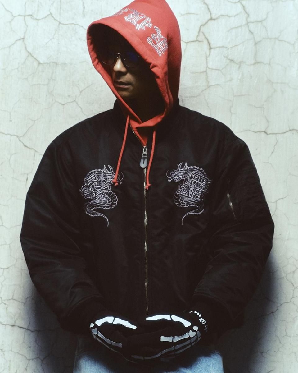 ミリタリーベースのデザインにBEPらしいオリエンタルな要素を追加した龍の刺繍が施されたMA-1。