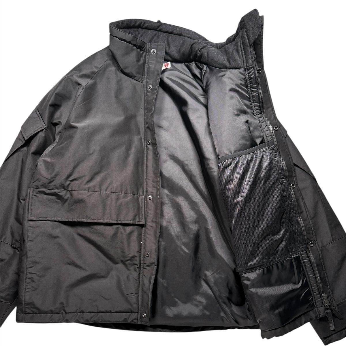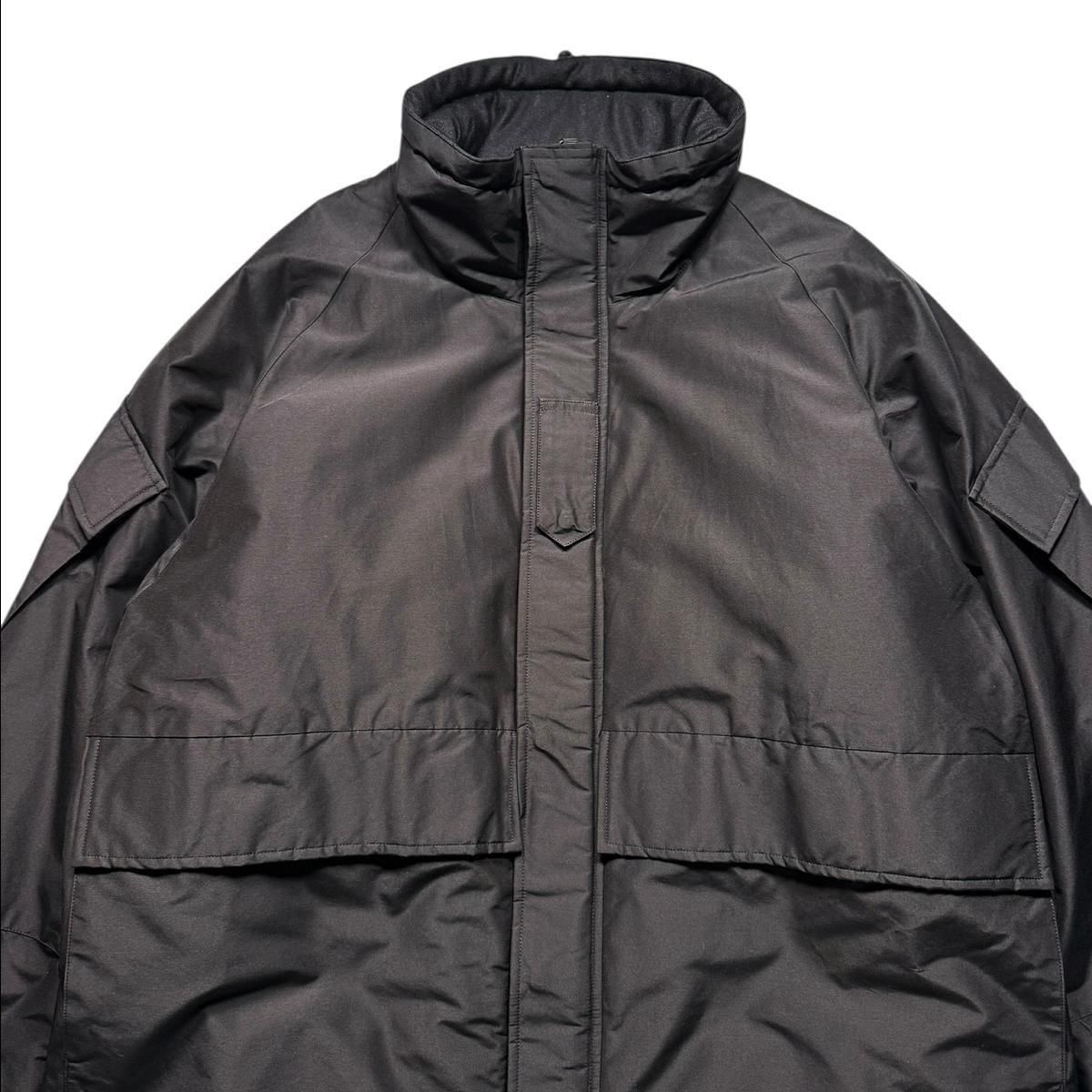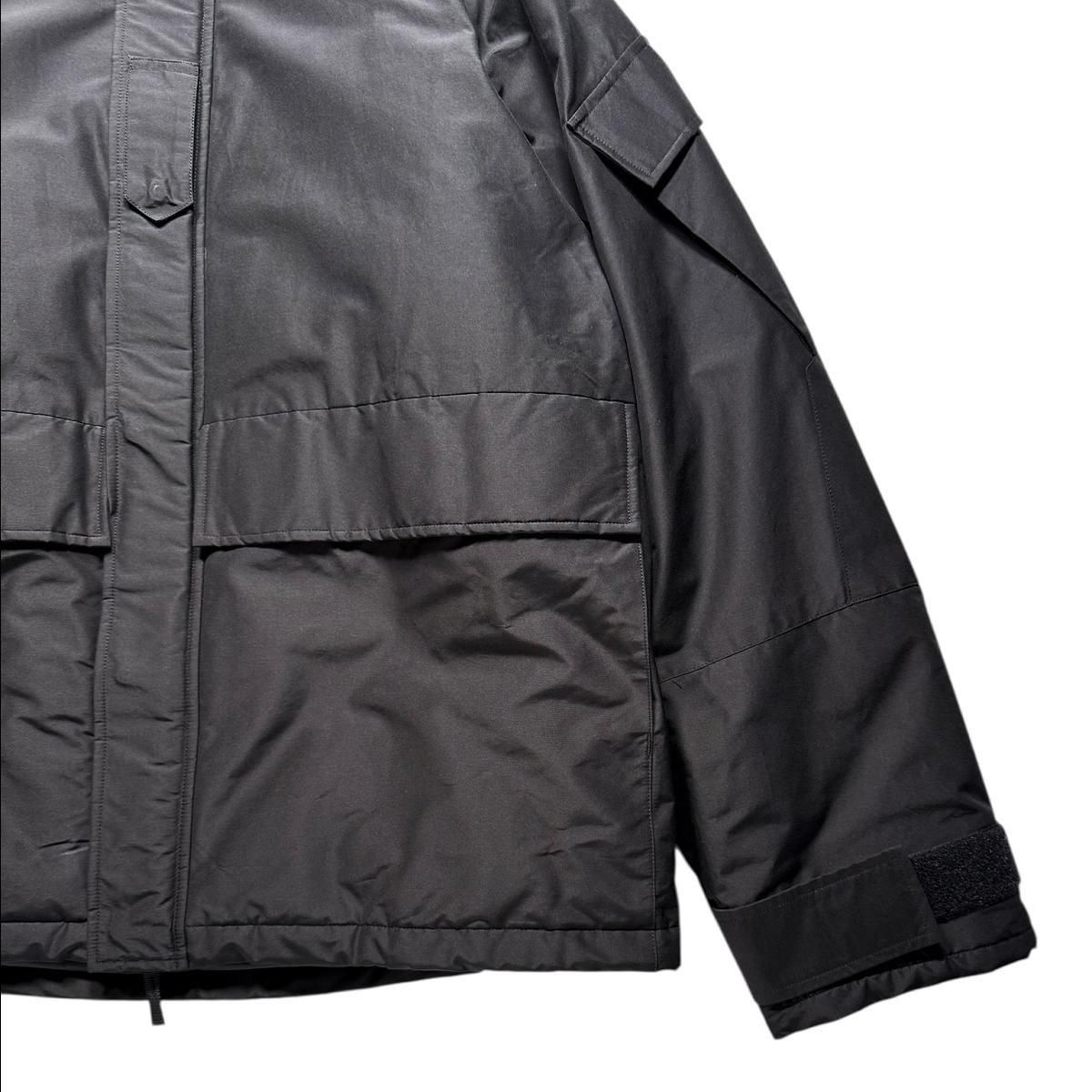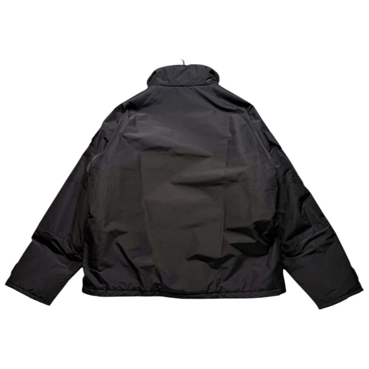 米軍の極寒地用システムECWCSジャケット(第2世代)をベースに、フードを排除することでミニマルかつモードな印象に再構築し、フードをなくしたことで首元のもたつきがなくなり、襟立ちの美しさが際立つデザイン