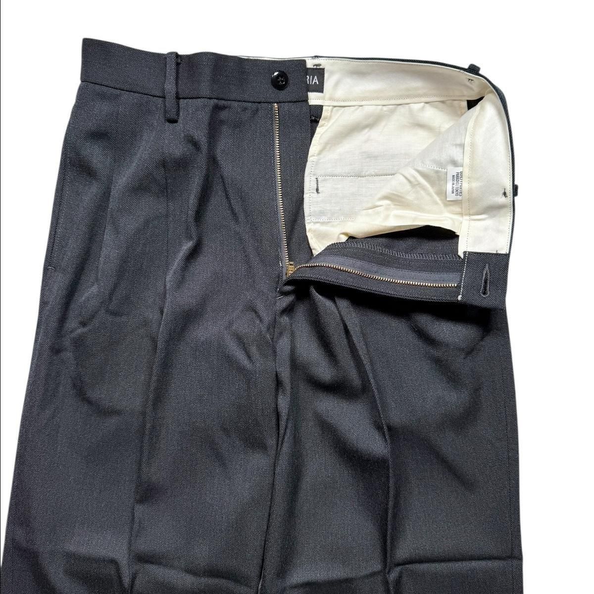 ウールサージ素材を使用し、製作されたDOUBLE PLEATED CHINO TROUSERSです。